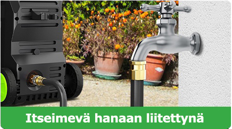 Aseta imuletku vesiämpäriin, ja korkeapainepesuri imee veden automaattisesti käyttöön. Tämä tila sopii tilanteisiin, joissa hanaa ei ole, kuten ulkoilma-campingissa tai syrjäisillä alueilla tehtäviin töihin.
