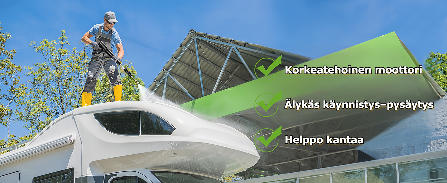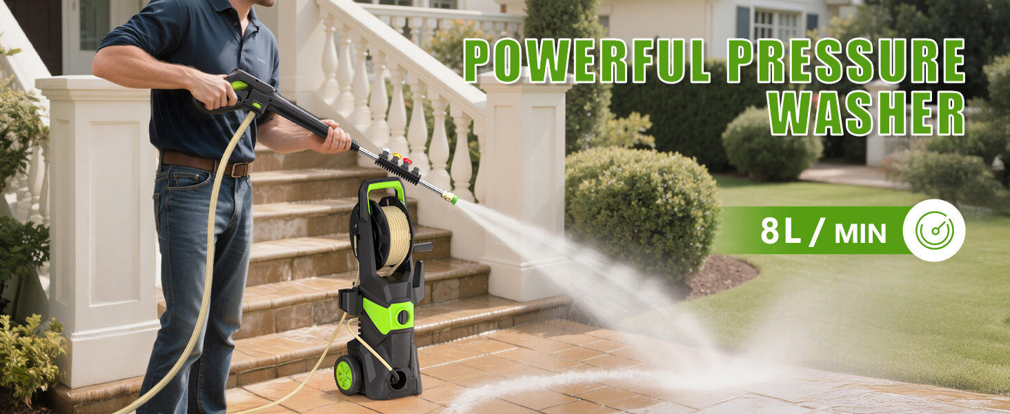 Varustettu tehokkaalla 2300 W moottorilla ja korkealaatuisella alumiinisella vesipumpulla, joka tekee siitä kestävän ruostetta ja korroosiota vastaan. Tämä tarkoittaa, että se on erittäin kestävä ja pidentää painepesurin käyttöikää. Maksimivirta on 480 litraa tunnissa, joten se selviytyy helposti jopa vaativimmista puhdistustehtävistä.